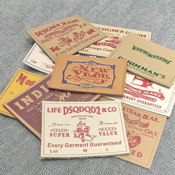 Özel Logo hakiki kot deri yama etiketi giyim kauçuk etiket rulo şeklinde dikdörtgen desen dikiş gravür